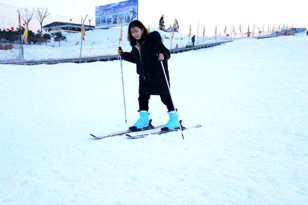6.接下來該學習平行轉(zhuǎn)彎滑行了。兩只雪板平行,與臀同寬,通過重心高低左右的交換實現(xiàn)轉(zhuǎn)彎。
